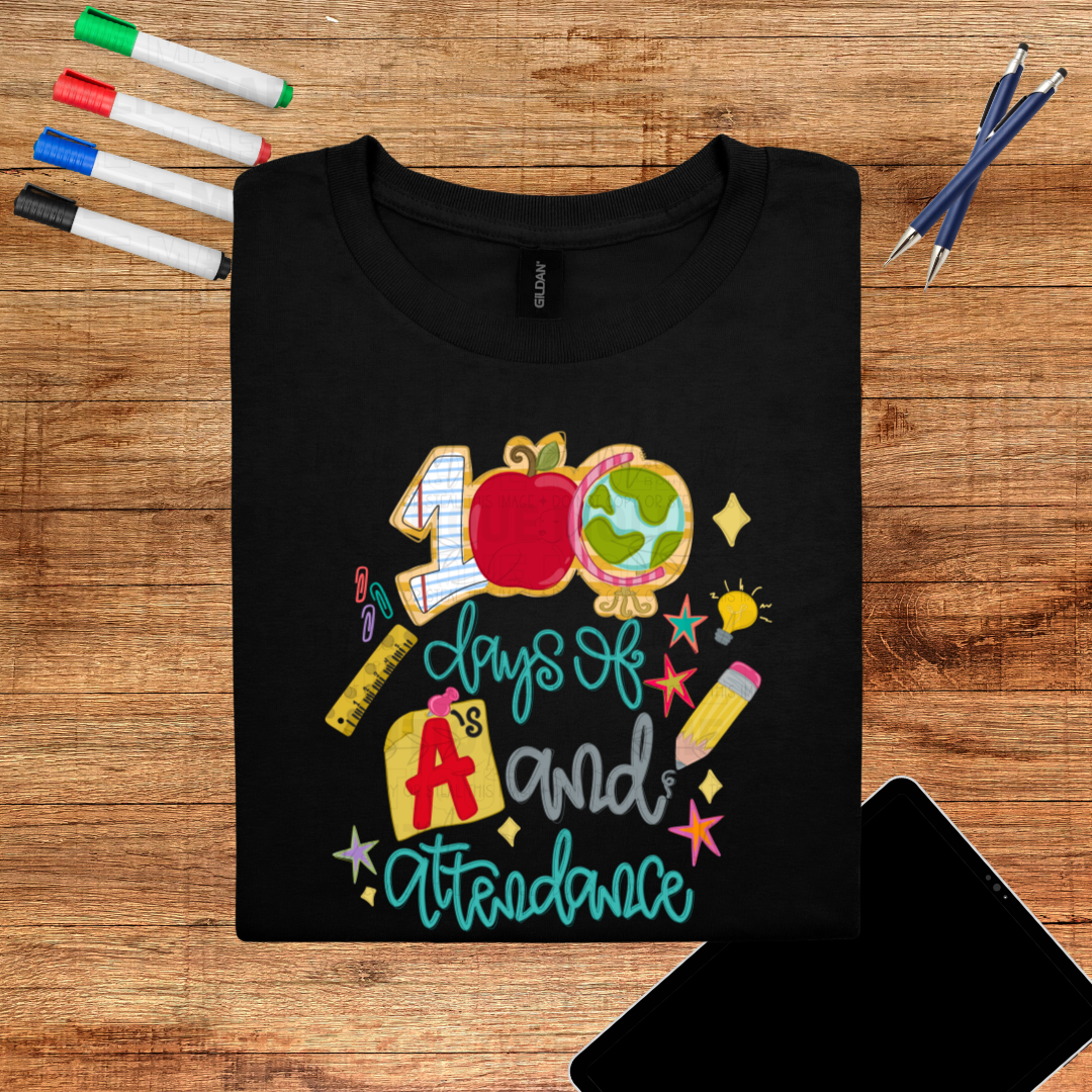 Fun 100 Days of A’s & Attendance school-themed graphic